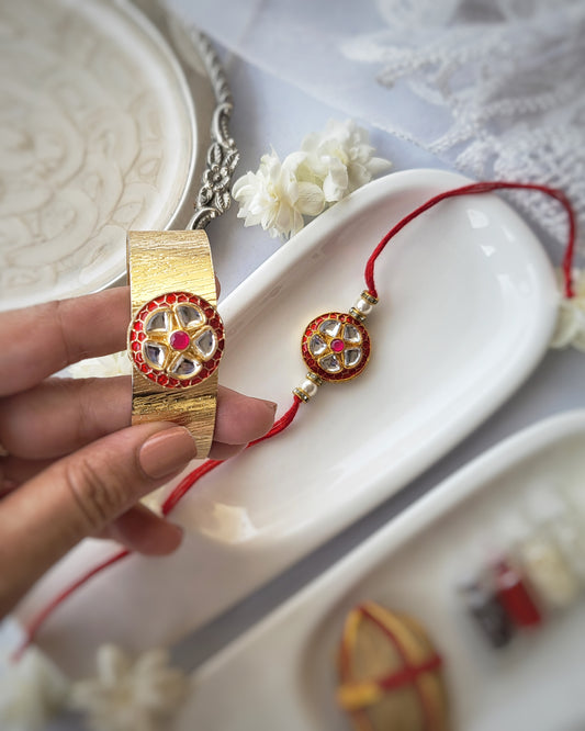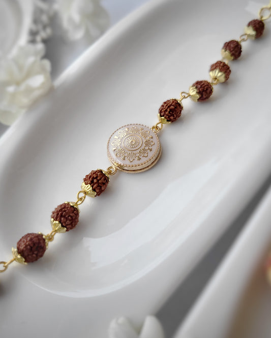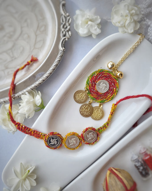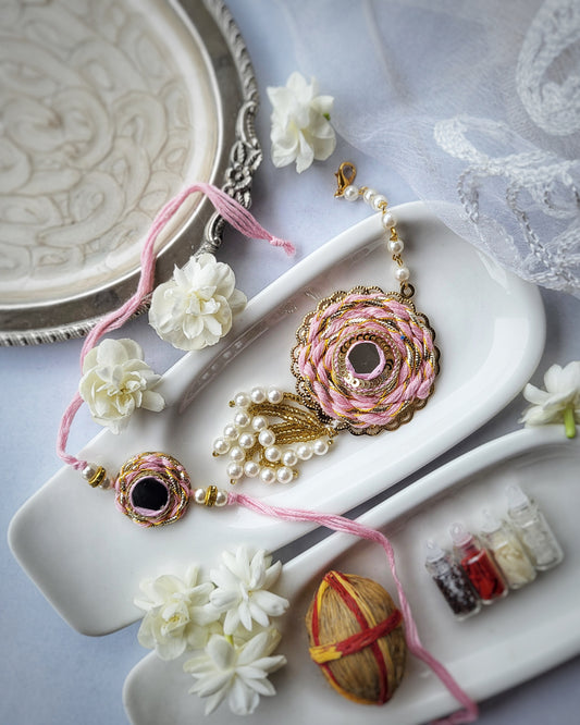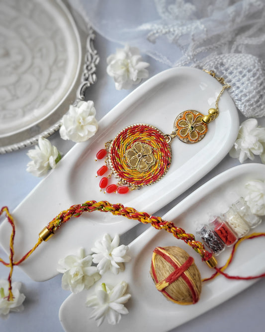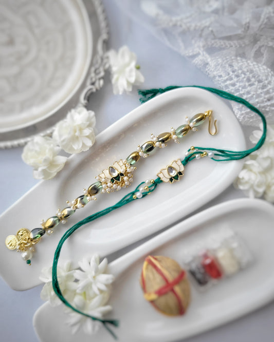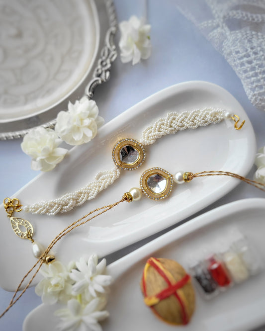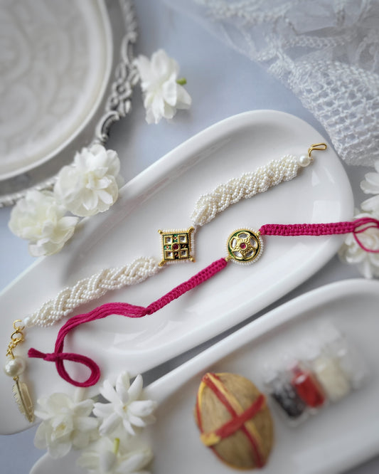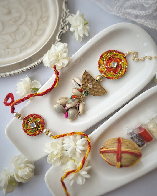 Pearl + Cowries in Mauli Dhaga Lumba Rakhi