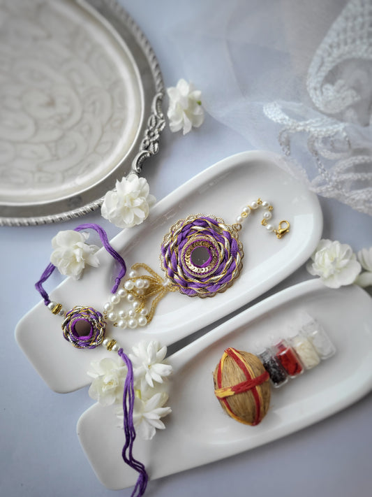 Pearl Knotted in Mauli Dhaga Lumba Rakhi