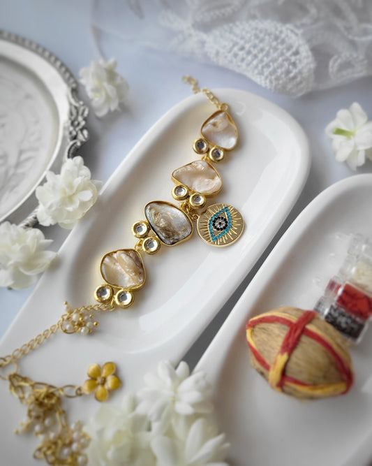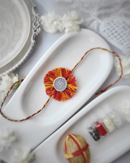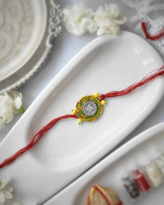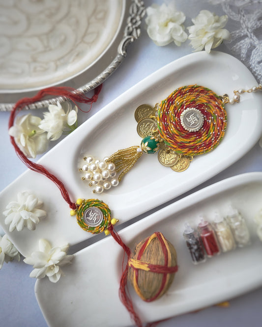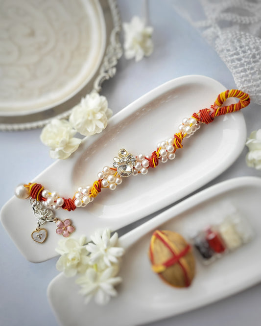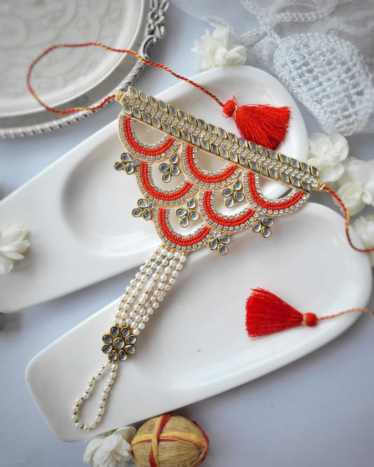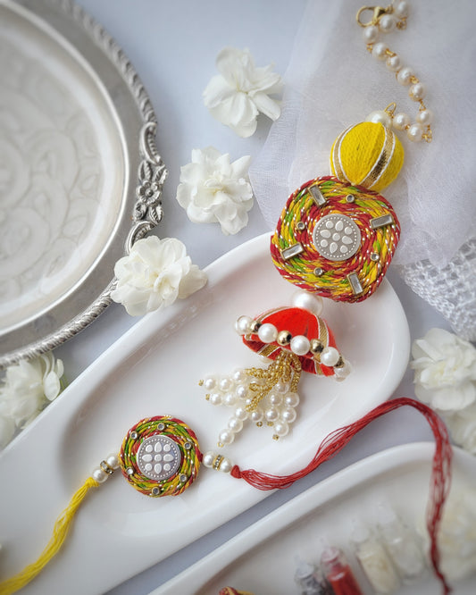 Bhabhi Hathful Rakhi + Red Pearl Brother Rakhi Set